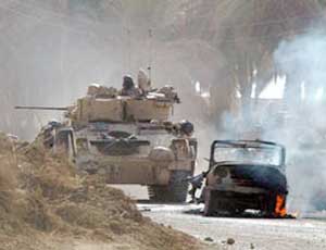 • Grand Ayatollah Sistani, whom Iraqi authorities in Najaf had held under house arrest, was released and issued a fatwa calling on Iraqis not to interfere with coalition forces, Brooks said Thursday. Last week, while in Iraqi custody, Sistani had issued another fatwa urging Muslims to resist. • The New York-based group Human Rights Watch condemned Iraq for placing antipersonnel landmines in and around a mosque, calling the action a violation of international humanitarian law. The group said Iraq stored antipersonnel landmines inside a mosque in Kadir Karam in northern Iraq and placed them around the mosque before abandoning the area March 27. • Rescued Army Pfc. Jessica Lynch, 19, arrived in Germany late Wednesday for treatment of injuries at Landstuhl Regional Medical Center. U.S. forces launched a pre-dawn raid Wednesday to rescue Lynch from a Nasiriya hospital used as an Iraqi military post. She had been listed as missing in action after intense fighting near Nasiriya on March 23. Central Command said 11 bodies also were discovered. Lynch, who is in stable condition, will undergo surgery Thursday on a fractured disc in her back, a family spokesman said. • Informants have told U.S. Marines that Gen. Ali Hassan al Majeed, Saddam's cousin, recently conducted meetings of the Iraqi resistance in the same hospital where Lynch was held prisoner. It was also reported that al Majeed has been driving in southern Iraq in an old red car, possibly a 1979 Nissan. Al Majeed is widely known as "Chemical Ali" for ordering Iraqi forces to use chemical weapons on Kurds in northern Iraq in 1988. • British forces late Wednesday and Thursday bombarded Iraqi forces around Basra with long-range artillery. A British military spokesman said the situation around Iraq's second-largest city was "stabilizing by the day." • The Qatar-based, Arab-language TV news network Al-Jazeera reported Wednesday it has suspended the work of all correspondents in Iraq after Iraqi officials banned at least one of its employees from reporting. • The United Nations warned Wednesday that humanitarian food rations handed out by coalition forces in Iraq have a wrapping the same color as unexploded bomblets dropped in the country. It cited concerns that children who confuse the two could be at risk for death or injury. • The fate of those aboard a U.S. Army Black Hawk helicopter remains unclear Thursday after the chopper went down Wednesday night near Karbala in south-central Iraq. The Pentagon said seven soldiers were killed and four others wounded and later rescued. But a Central Command statement said six people were on the Black Hawk and that casualties could not be confirmed. • U.S. officials also said that a U.S. Navy F/A-18C Hornet went down over Iraq early Thursday and a search-and-rescue operation was under way for the pilot, who ejected. U.S. military officials confirmed that they are investigating whether a U.S. Patriot missile may have mistakenly shot down the plane.