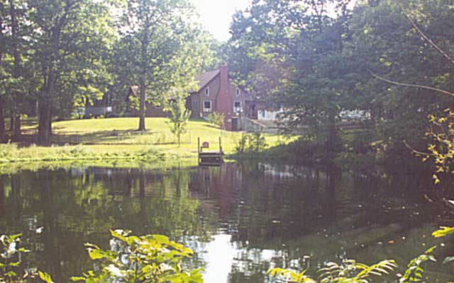 house and pond.
